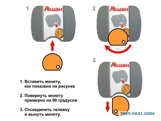 сейчас тележки для покупок берут, вставляя в них 5-10 рублевые монеты, а после покупок возвращают тележку на место и возвращают свои деньги 🤪