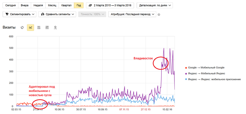 Кулинарный сайт. Алгоритм в действии. 02.02.2016 - поднялась посещаемость с мобильного яндекса