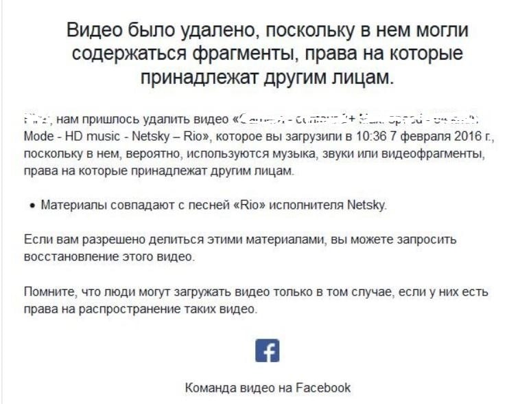 На фейсбуке и ютубе банят автоматом, если полное совпадение. Поэтому выход - отредактировать музыку (исказить в любом редакторе типа Audacity) или записать ее же самостоятельно или свою мелодию поставить.