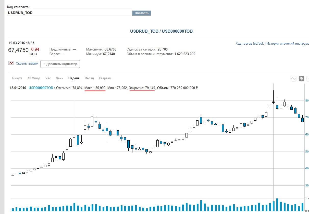 Биржевой курс доллара к 12.43 по московскому времени вырос до 86,33 рубля... Графики искать лень, но он столько стоил.