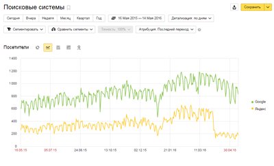 Раньше соотношение пришедших с гугла и яндекса соотносилось как 2 к 1, сейчас аж 6 к 1.