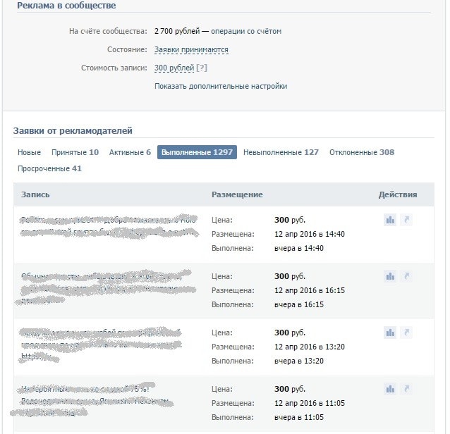 Выполнено 520 заявок из них 33 заявки по цене 335 р. и 487 заявок по цене 300 р.