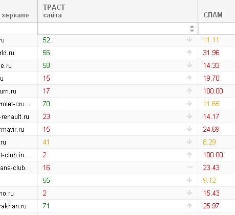 Посмотрел на чектрасте трастовость и заспамленность доноров одного из своих сайтов, картинка печальная: