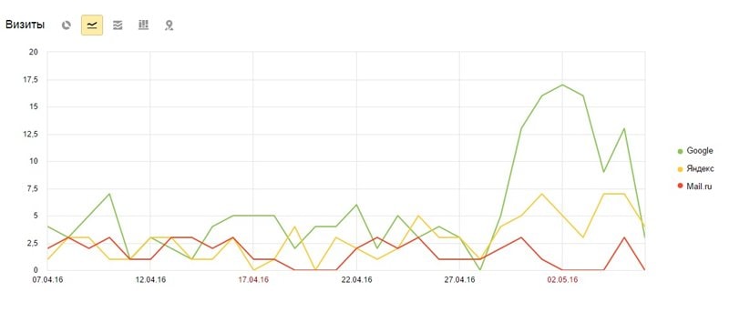 1. Количество посетителей сайта из поисковых систем: 100 человек к конку 2016.