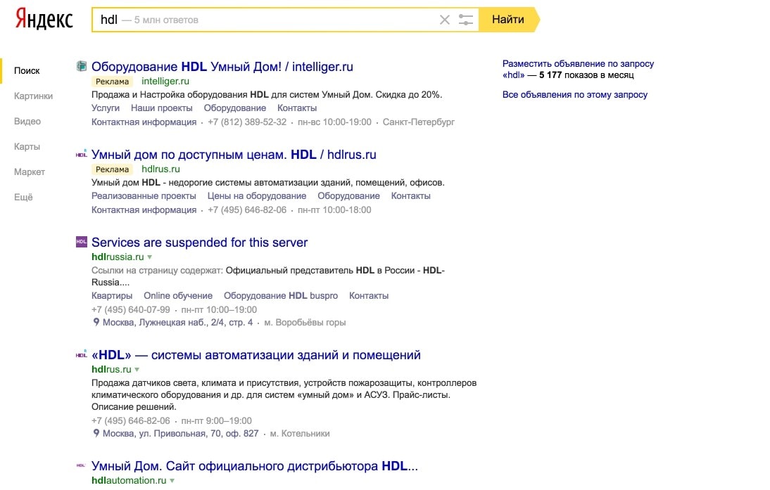 По запросу мой сайт сидел в поисковой выдаче, но ниже, чем у конкурентов (ровно между обоими его сайтами:idea:), вот с такой выдачей -