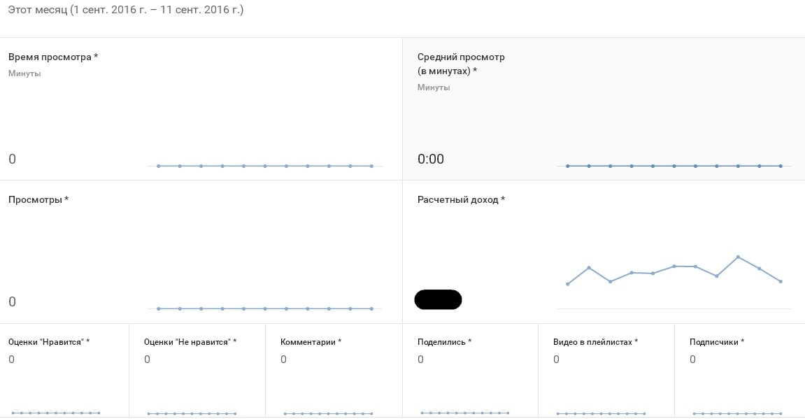 Если я выбираю аналитику только за 11-е, ютюб почему-то перебрасывал на вкладку с демографией (уже пофиксили). Но данных нет: ни просмотров, ничего, кроме суммы за день.