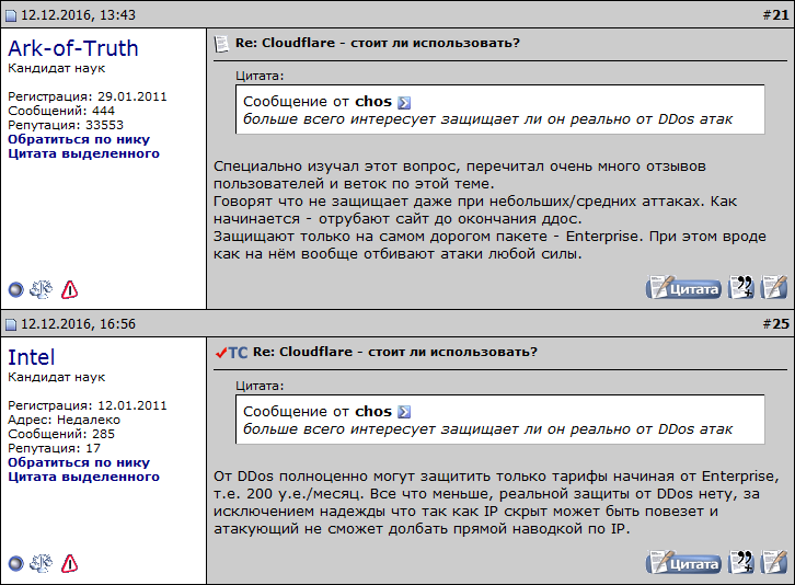 И ещё пару слов о CloudFlare. Некоторые вебмастера, когда подключают его на свои сайты, даже не догадываются, что на бесплатном тарифном плане он не предоставляет полноценную защиту от DDoS-атак. Вот что пишут по этому поводу в соседнем разделе: