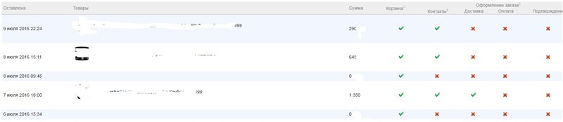 Удобнее всего смотреть через CRM систему, как по мне. Функционал систем аналитики не позволяет записать какие товары были в корзине (но не были куплены, оформлены), их сумму и т.д.