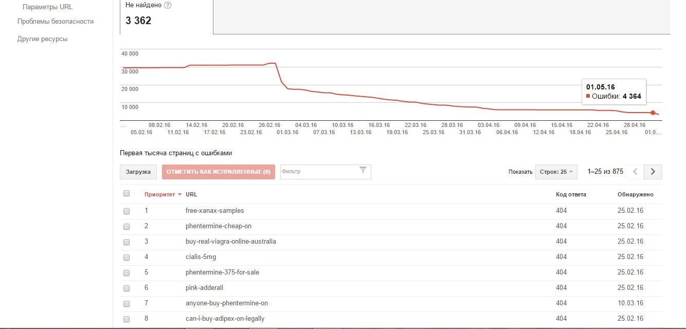 . Но страницы время от времени всё равно всплывали и точно так же удалялись врусную из гуглвебмастера... Со слов программиста на сайте поменяли пароли, этот вирус был ликвидирован. Сканнер AI-BOLIT вирусов не нашел. В яндекс-вебмастере всё еще вылазят эти ссылки https://pp.vk.me/c630029/v630029500/3a86f/ccIsvNpDhck.jpg, а в гугл уже нет... Как можно от этой заразы избавиться раз и навсегда?