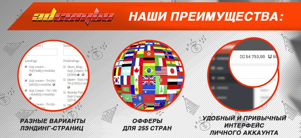 Позвольте представить Вам уникальную CPA-сеть на «бурж» - AdCombo. Наша уникальность заключается в том, что в работе по CPA-стандарту мы используем старую добрую модель «подтверждённой заявки» (или же Cash on Delivery). И это великолепно, друзья, поскольку теперь каждый вебмастер может легко осваивать бурженетовские аудитории при помощи родных и привычных схем, интерфейсов и, разумеется, связок.