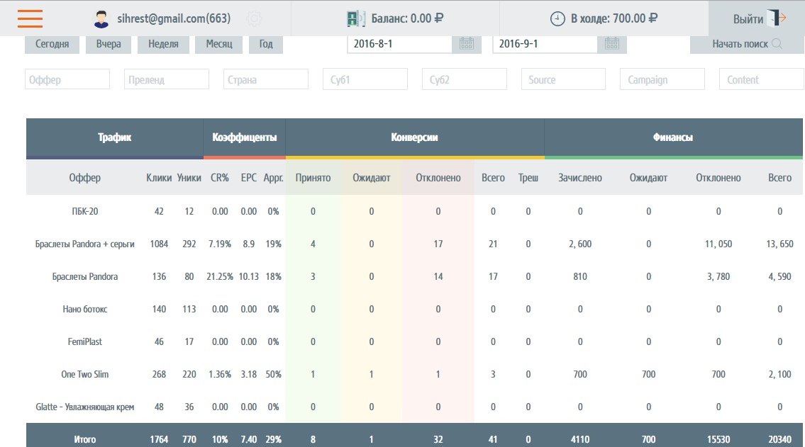 В конце лета начал периодически сливать на товарку (9-10к за месяц):