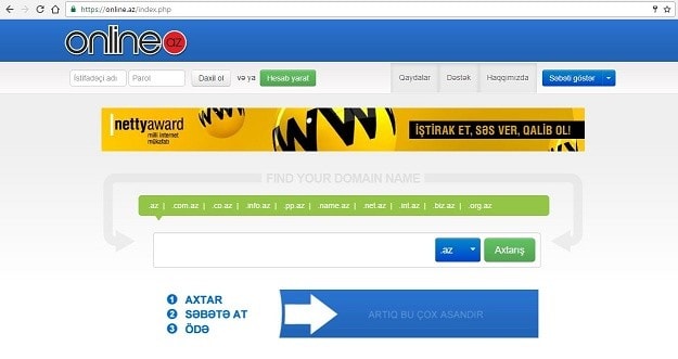 2.1. Онлайн регистрация доменных имен в зоне .az ( «он-лайн регистрация доменного имени"), созданный для этой цели на территории Азербайджанской Республики www.online.az доступны через сайт.