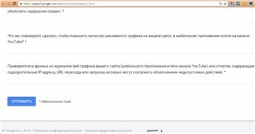Причем Google Analytics подробных данных об источниках трафика не показывает, хотя для апелляции требуют IP подозрительных пользователей (скрин из формы апелляции):