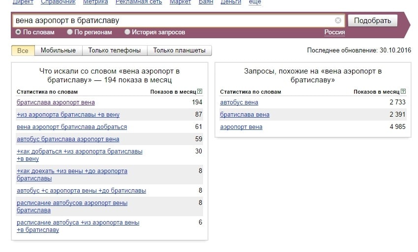1) В объявлении важен порядок слов, например, билеты Вена Братислава. При этом между словами употребляются предлоги "в" "до" и т.д. Вордстат показывает статистику в таком формате. То есть [вена в братиславу], [вена до братиславы]. А планировщик слов в Директе плюет на стопслова и все их пихает в одну калитку [вена братислава]. Я так понимаю, в объявлениях директа работает таже схема? То есть в [вена братислава] учитываются также все стоп-слова?