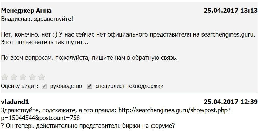 Представители биржи, прокомментируйте посты <!--WEB--> о его причастности к работе в бирже. А то человек здесь и консультирует, а вдруг еще скоро и деньги будет брать за прохождение модерации?