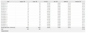 Средний доход в день, исходя из 15 дней февраля - 0,11 USD.