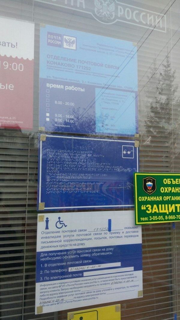 о! табличка с текстом брайля для слепых за стеклом весит?