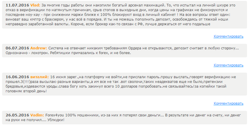 Тут куча негативных отзывов: http://ratingfx.ru/forex4you-otzyvy/comment/