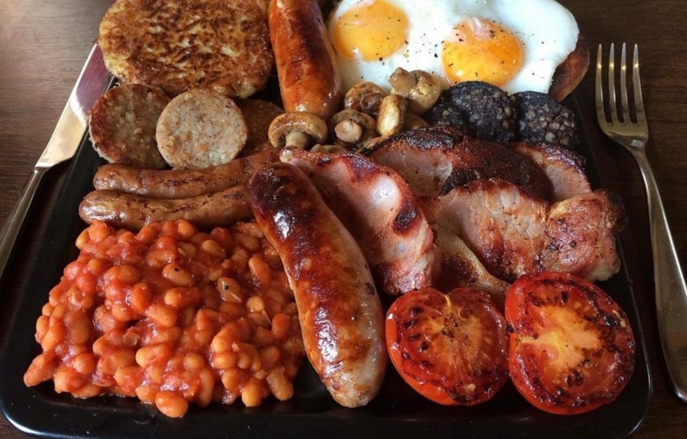 Ну если это классический английский завтрак, то нет. И да, из съедобного в нём действительно только помидорки, грибочки и яйца. Всё остальное редкостная гадость. Даже колбаски.