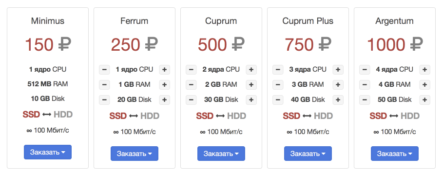 По многочисленным просьбам мы запустили новый тариф Minimus по цене 100 руб. с HDD и 150 руб. с SSD. Тариф Diamond был переименован в Maximus.