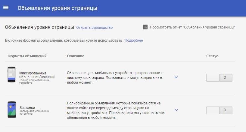 Вроде они всем и так доступны. Вот инструкция: https://support.google.com/adsense/answer/7171740?hl=ru