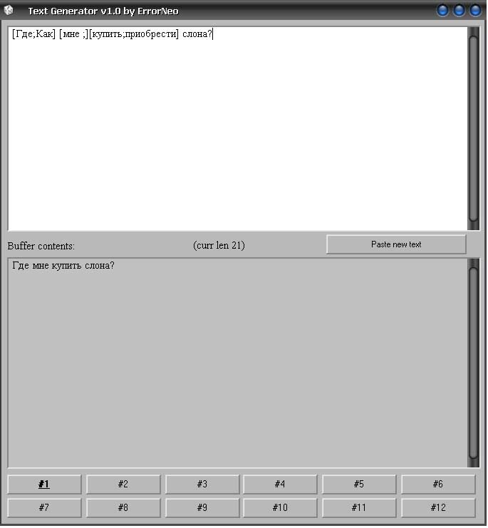 Кнопки #1-#12 позволяют работать сразу с 12 шаблонами текстов.