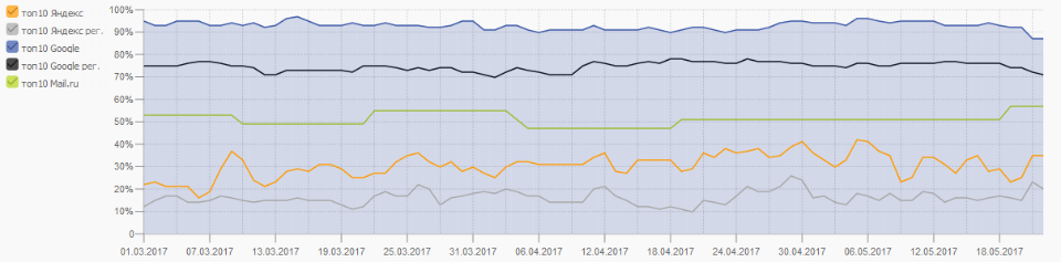 Где видно на графике вначале резко минус гугл, это потому что сделан был 100% переход с простого страничного HTML сайта, на СMS, и поэтому структура поменялась и обвал. А так пока ничего не трогали, сайт был в ТОП и Яндекса и Гугла. Просто нельзя было его так оставлять...сайт с 90х-))) Народ ржал-))) Теперь вообще не до смеха...