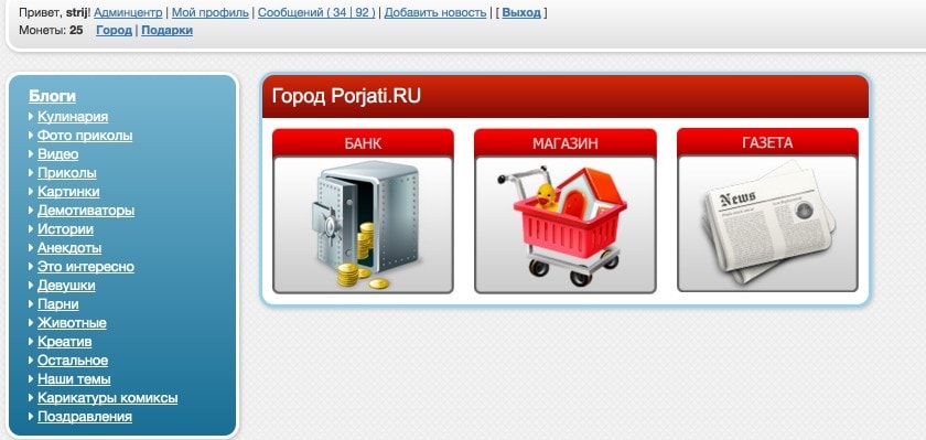 Вот так выглядит функционал пользователя в разделе Город Porjati :