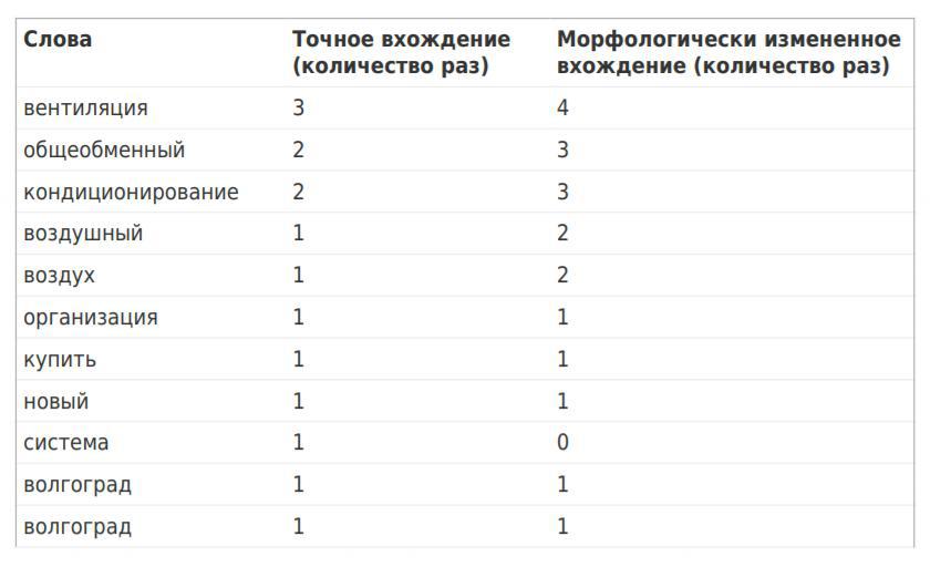 1. Вхождение основного ключа в текст, плюс хвост слов из группы. Пример на картинке.