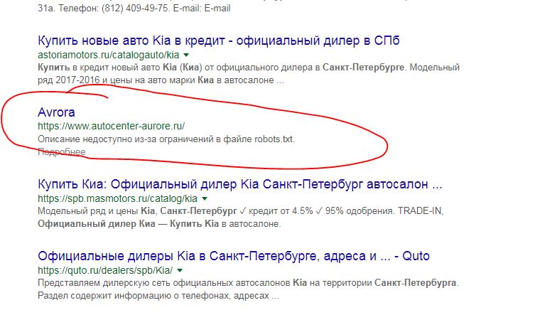 По фразе "kia купить спб официалы" на 15 позиции вот такой цирк увидел: