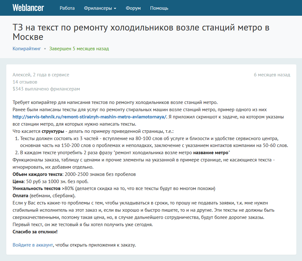 Ага, смешно. Есть сайт в услугах в Москве, рвёт все топы в последние недели как тузик грелку. А тексты заказывает вот так: