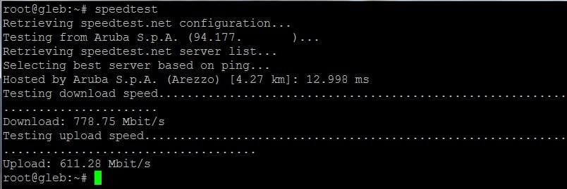 Скорость до локальной сети, см "Aruba S.p.a 12ms". А скорость из России меньше.