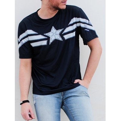 Fashion Round Neck Slimming Color Block Captain America Design Short Sleeve