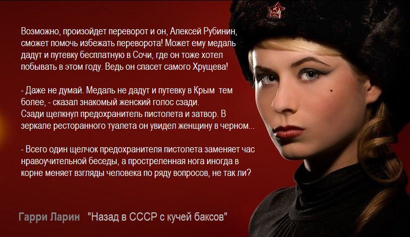 Вот одна из самых резонансных частей, к которой имели претензии редакторы, т.к. тут фигурируют современные политики "СССР-2017" (написана летом 2017 года)