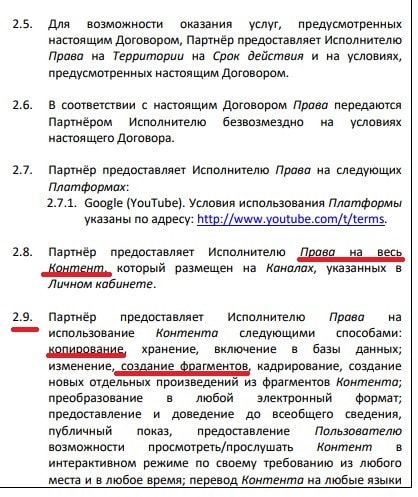 Спасибо за скрин, но знаю их договор почти наизусть) Если вы заходили на сайт AIR, то наверняка Вы видели вставки различных видео с каналов их партнёров. Так вот, это и есть Копирование и создание фрагментов. На различных презентациях, на фестивале ВидеоЖара и тп AIR использует нарезки, фрагменты видео своих партнёров. Они не имеют права перезаливать Ваш контен, либо же создавать каналы на основе Ваших видео. Это очень глупо. К тому же, YouTube давно уже умеет распознавать одинаковые видео и никогда, никогда второй такой одинаковый канал продвигать не будет. Откуда у Вас столько фантазии?)) Нет никакого заговора)