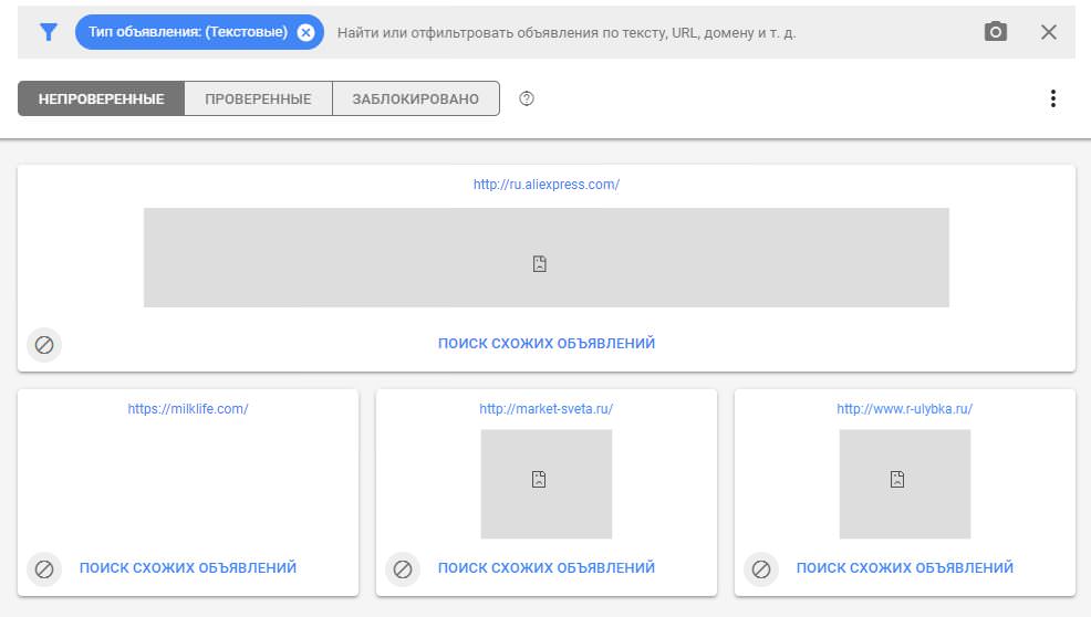 Я смотрю вкладку "непроверенные", там миллиард объявлений и многие из них не отображаются (либо белый квадрат, либо черный смайлик на сером фоне. эдблок выключен) — не знаю как сортировать такие объявы, у них только домен отображается.
