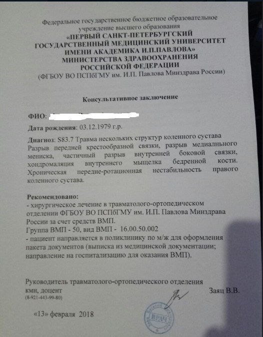 В 2007 сломал левый надколенник с разрывом связки, 25 октября, сдаваться пришел через 3 недели в травмпункт, дали направление на экстренную госпитализацию, 10 ноября приехал в госпиталь, в приемнике сразу на каталку уложили и повезли в операционную, остеосинтез. Наркоз масочный, вторатан, отходил 3 дня, на 4 день свалил домой, антибиотики забрал с собой, дома курс заканчивал, через 3 месяца начал ходить без костылей и палки.