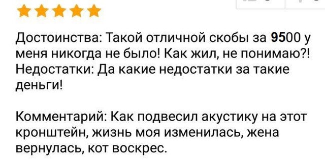 Ну что ж, во-первых это не ноунейм, не китаец с али. Кронштейн не сломается и не заглючит. Во-вторых это статус. Если акустика за 3 ляма, то покупать кронштейн в хозяйственном - как-то не с руки. В-третьих, дизайн конечно: кронштейн лежит в руке удобнее, чем другие кронштейны, а скругленные уголки этого кронштейна - результат работы топовых инженеров. В-четвертых, Стив Джобс или кто-нибудь еще, в общем какое-нибудь имя.