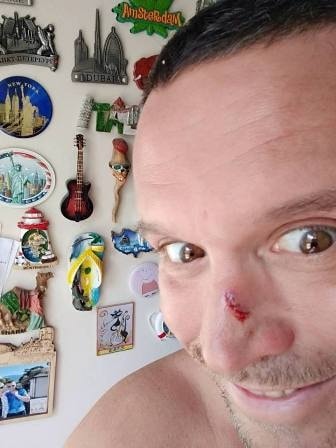 Смешно, но сам упал с лестницы.. полез с будуна подкрасить подставку для кондея... и херак!