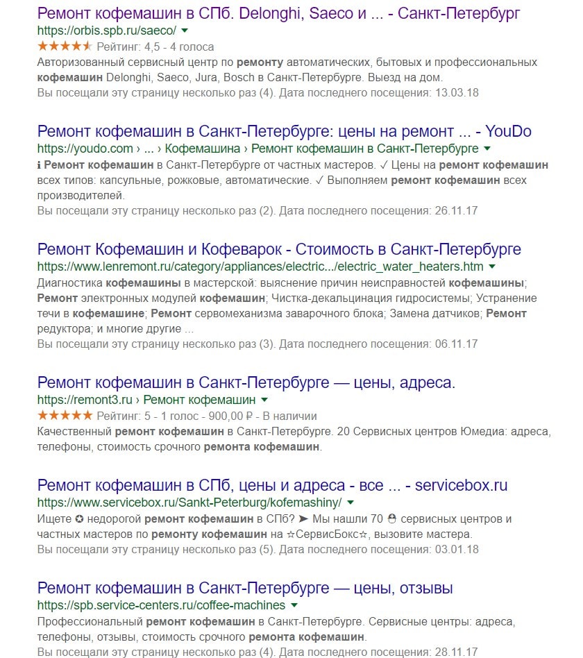 Вот нужно мне ламинат положить, я взял из выдачи 5 сайтов, прозвонил, узнал цены и сроки и пошел думать. Через неделю принял решение и начинаю искать "сайт, у которого в шапке справа зеленый квадрат был", потому что имя домена было сложным/неочевидным.