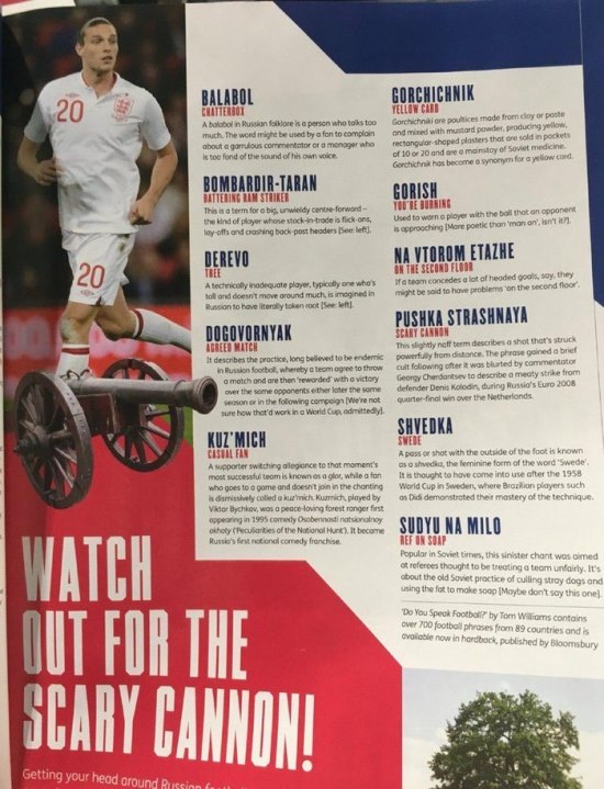 Британские СМИ выпустили такой вот перечень некоторых футбольных выражений