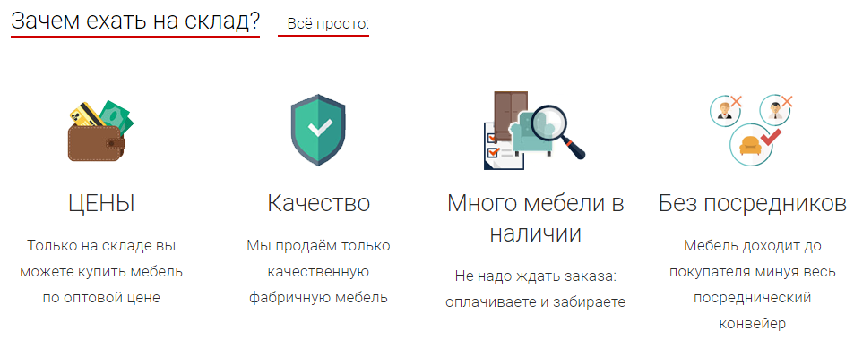 Своей инфографикой вы должны внушать аудитории, что вы попали на наш сайт и ознакомились с нашей информацией - это большая удача. Вы большие молодцы, вы теперь обладатели эксклюзивной информацией - вы знаете где найти дешевле и не потерять в качестве. Вы обладаете информацией с большой практической ценностью! Общая масса бегает по мебельным закуткам и магазинчикам и вынужденно переплачивает, а вы - молодец, пользуетесь интернетом и разумно экономите свои деньги и время!