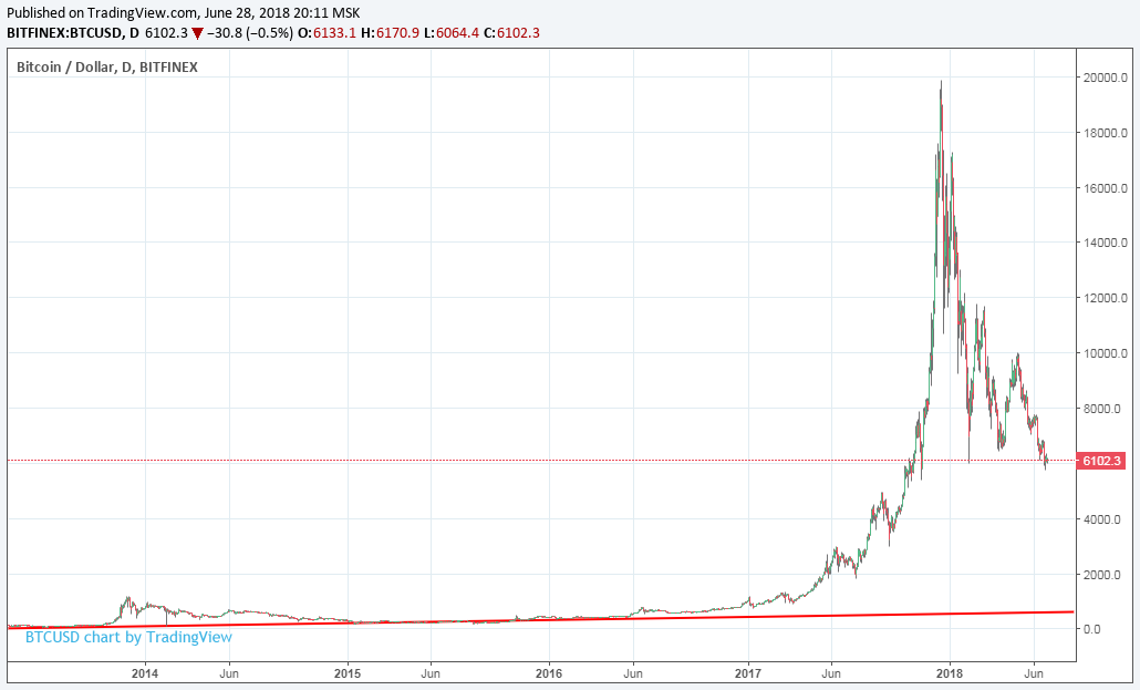 И второй раз пузырь надуться не может. Потому что дураков нету - вкладывать деньги в то, что уже рухнуло однажды. Факт обрушения видимый на графике полностью уничтожает привлекательность актива для инвесторов. Ещё ладно - если какой-то реальный подешевеший актив, например нефть или золото хороший инвестор закупит по дешёвке, на дне, зная что это ценный товар, и он никогда не может стоить слишком низко. Но биткоин не является материальным товаром, это просто набор байтов, который по странному стечению обстоятельств вырос в цене. Такой актив изначально был похож на пузырь, а после обрушения цены, всем стало очевидно что это был пузырь и поэтому он уже не имеет шансов подняться. Ибо весь его рост держался на вкладах инвесторов в "пустоту" и веру в ценность этой "пустоты". Обрушение цены на 70% избавляет от всех иллюзий насчёт ценности этой "пустоты".
