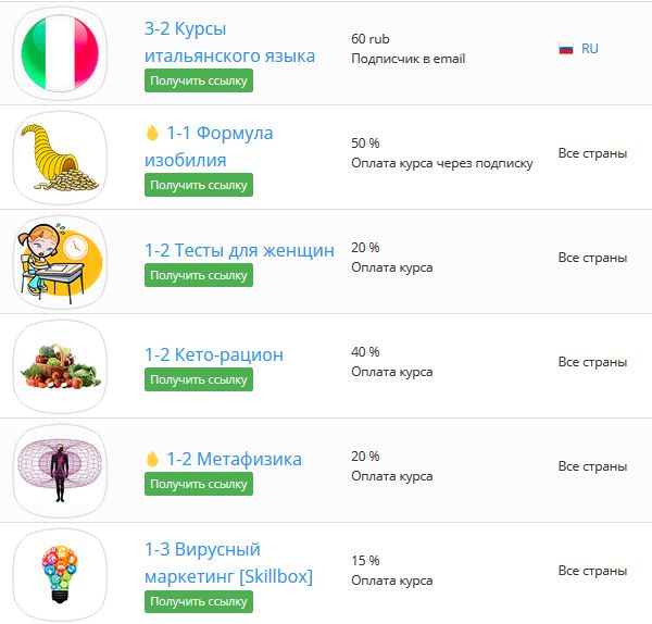 каталог партнерских программ для сайтов по продаже информационных продуктов самых популярных тематик.