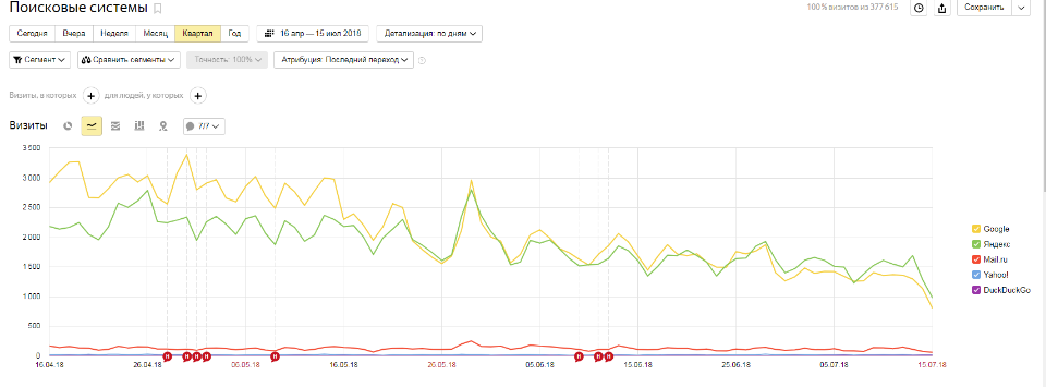 Вот график снижения посещаемости одного из сайтов. За последний квартал 2018 года.