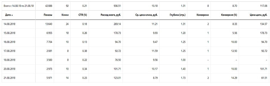 У клиента одна конкретная услуга со средним чеком больше 20 000 рублей и небольшая численность города, поэтому трафика не так много.