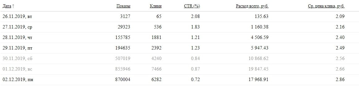 Компании 2 года, за 2 года 1631 клик, из них 800+ за 2 декабря, а в поддержке Яндекса мне за сезонность спроса и появление тематичных площадок в системе рассказывают 😒