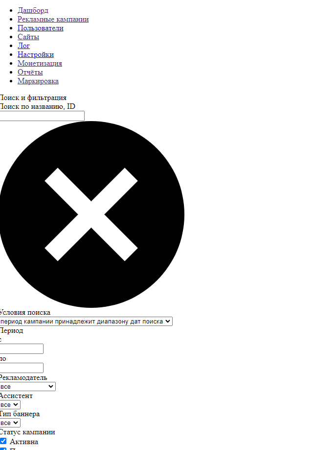Здравствуйте. Как верно подсказали, попробуйте отключить блокировщик рекламы и перезагрузить интерфейс. Также можно зайти в Adfox с другого браузера. Если не поможет, пришлите, пожалуйста, мне в личные сообщения ваш логин Adox и версию браузера. Посмотрим с командой, в чём может быть дело.
