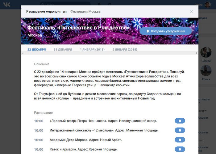 Пример использования нового приложения вы можете увидеть в сообществе Фестивали Москвы: