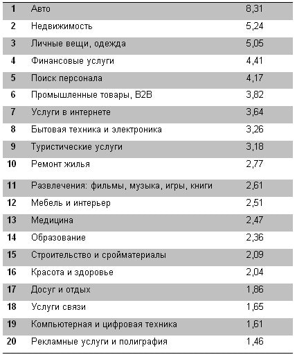 Промышленные компании и банки также активно продвигаются в интернете. Доля категории «Финансовые услуги» в рекламном бюджете Бегуна составила 6,6%, доля категории «Промышленные товары, B2B» - 5,9%.